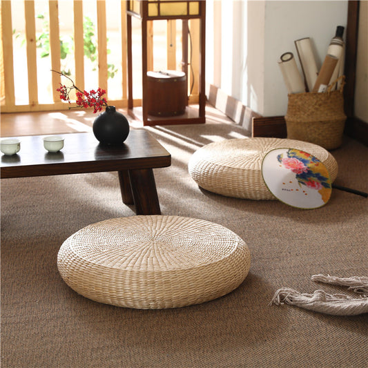 Floor Pillow Eco-Friendly Round Straw Cushion Hand Woven Tatami Floor Mat Yoga Tea Ceremony Meditation Pad